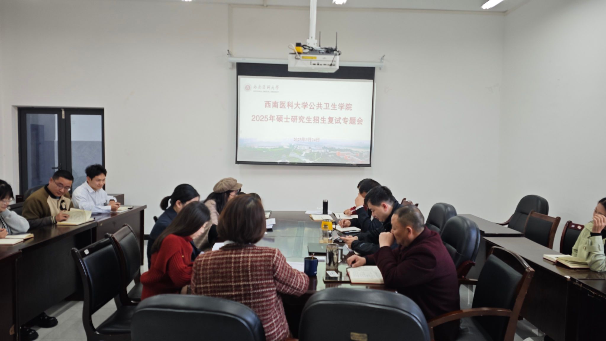 3月24日,我院2025年硕士研究生招生复试专题会在仁济楼320会议室召开。学院党委书记张依国、院长马玲、党委副书记金川、副院长范颂、副院长杨懿以及相关科室人员参加了会议。