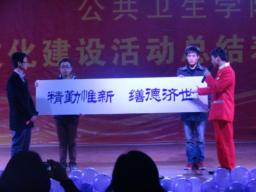 表彰会上,阳静对华人策略社区官网网址一年来在文化建设活动中开展的工作进行了总结。贾红、雷章恒分别对院徽、院训、“我为公卫发展献一计”金点子征集活动的获奖同学进行了表彰。院徽设计者范朝均,院训设计者马帮靖、陈弈同学分别对院徽、院训进行现场释义。表彰会上华人策略社区官网网址同学还表演了精彩的文艺节目。