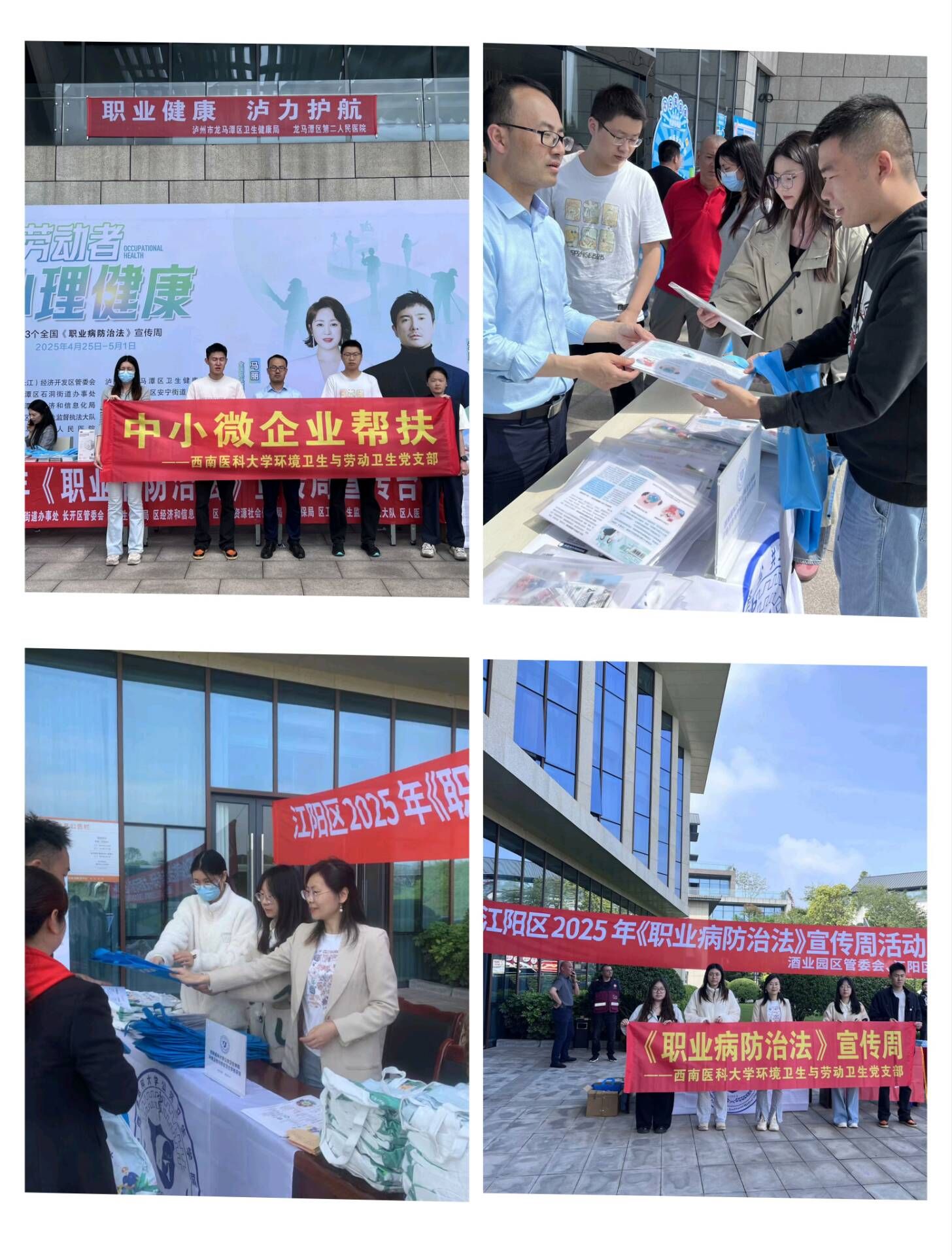 聚焦职业健康,守护劳动安全。2025年4月25-27日,泸州市江阳区、龙马潭区、合江县、泸县四地开展泸州市第2个职业健康集中宣传月暨国家第23个职业病防治法宣传周活动。华人策略社区官网网址华人策略社区官网网址环境卫生与劳动卫生党支部联合四地的卫生行政部门,以“职业健康,泸力护航”为主题,通过“宣,讲,帮,促”多维度形式,发挥自身专业特长,向劳动者普及职业病防治知识,强化用人单位责任意识。