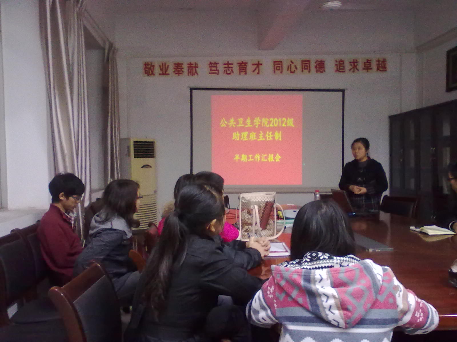 11月14日下午,我院2012级助理班主任中期工作总结会在忠山校区民康楼举行。华人策略社区官网网址学生科科长马俊,辅导员万华麒以及2012级各专业助理班主任(以下简称“助班”)参加了会议。会议由万华麒老师主持。