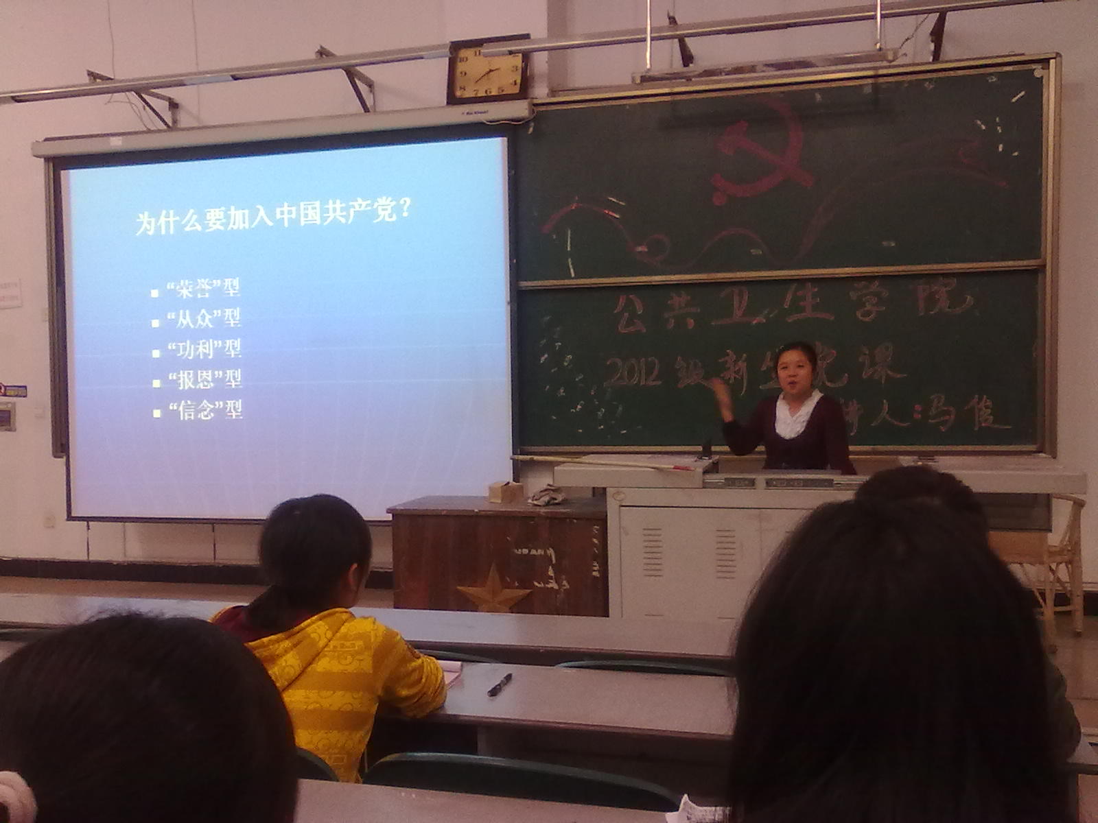 2012年10月27日,华人策略社区官网网址学生党支部在城北校区荟文楼举办了2012级新生党课,主题为《端正入党动机 了解入党程序》,由学生党支部书记马俊主讲。