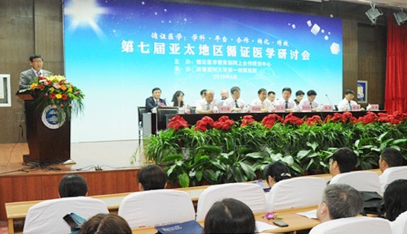 2012年8月2日-4日,第七届亚太地区循证医学研讨会(暨循证医学教育部网上合作研究中心第四批分中心授牌仪式)在新疆乌鲁木齐市召开。大会特别邀请了Cochrane 协作网主席Jeremy Michael Grimshaw 教授,美国中华医学基金会(CMB)协调员Mariel Reed教授,卫生部医政司王羽司长,卫生部科教司刘登峰副司长,国家中医药管理局科技司李昱副司长,教育部科技司周国栋副处长,卫生部中国循证医学中心、教育部循证医学网上合作研究中心主任李幼平教授,自治区政府秘书长李春阳,自治区卫生厅党组书记殷雨霖,新疆医科大学党委书记李斌等参加,会议由新疆医科大学附属第一医院温浩院长主持。19个循证医学分中心领导、研究人员以及来自全国各地的200余名代表参加了会议。