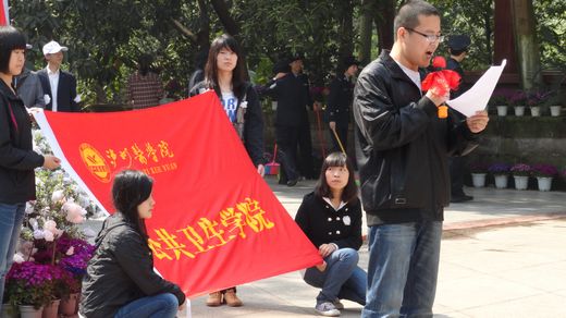 在主持人宣布祭奠活动正式开始后,同学们怀着崇敬的心情向英雄纪念碑敬献花圈,并为烈士默哀三分钟,以表达对先烈的无限哀悼。随后,志愿者代表作了发言表达了对革命烈士最崇高的敬意。志愿者们还参观了革命烈士纪念馆,了解了更多关于革命烈士的英勇事迹。