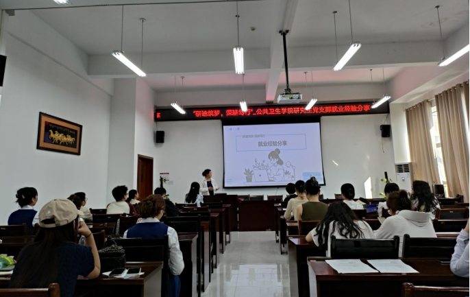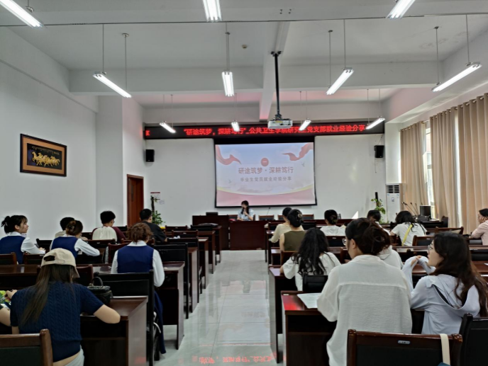 会上,李昱萱同志首先发言,围绕就业形势分析、求职前期准备及个人面试经历三个维度展开分享。他结合公共卫生专业特点,深入剖析了当前疾控系统、医疗机构等岗位的竞争态势,建议同学们尽早规划职业方向,注重积累实习经验和考取相关技能证书,并分享了自身在面试中的应变技巧。随后,王海容同志从求职历程、就业选择、信息获取渠道及备考策略四个方面作了补充。她着重强调了多渠道搜集招聘信息的重要性,建议针对性地备考专业知识和公共科目,并特别指出基层医疗岗位蕴含的发展机遇。