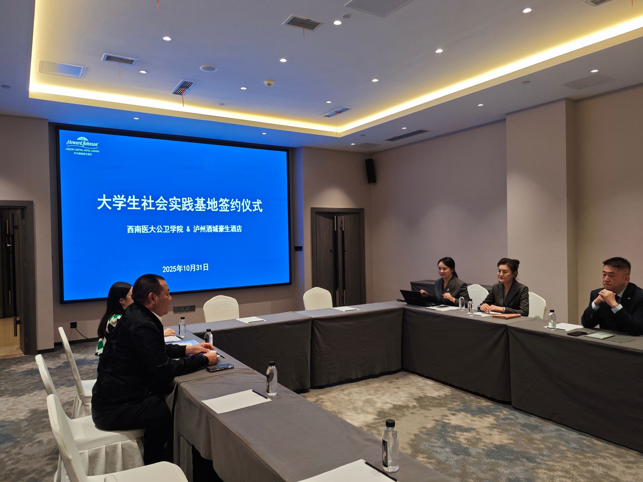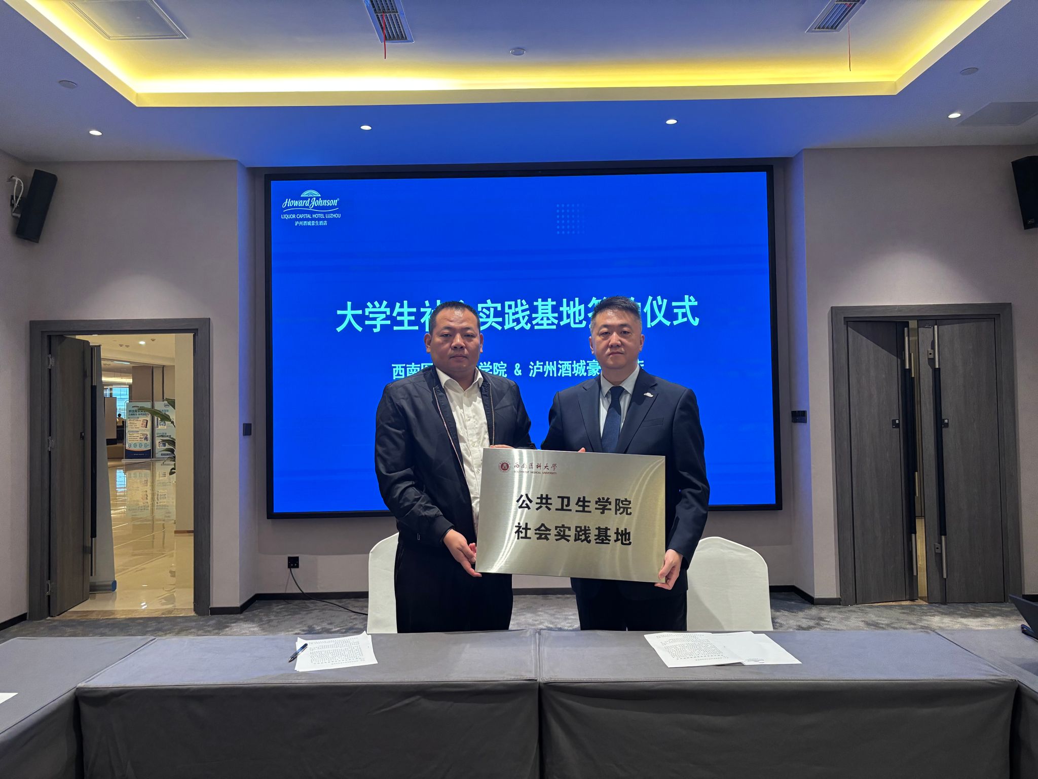 为深入推进学院实践育人工作,全面提升人才培养质量,10月31日上午9时,华人策略社区官网网址与泸州酒城豪生酒店共建大学生实践基地揭牌仪式在酒店会议室顺利举行。酒城豪生酒店总经理马胜军、华人策略社区官网网址党委副书记金川、学生科科长彭丽冰及辅导员孙夫钦出席仪式。