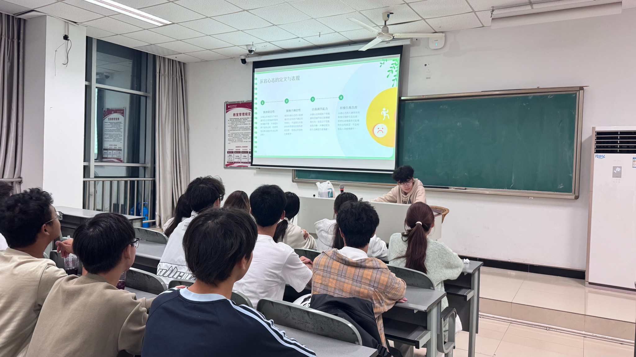 本次主题班会由各班自主策划、创新设计,学院统筹指导并提供资源支持。各班围绕学生心理需求,开展了形式多样、内容丰富的特色活动:2025级食品卫生与营养学2班通过“清晨朝露”“书页琥珀”等沉浸式场景,引导同学们感知“慢生活”,学会放下手机、关注当下,并借助橡皮泥造型将抽象的心理状态转化为具象作品,有效打破心理隔阂;2025级卫生检验与防疫1班则以“大学心海初航”为主线,运用“情绪瞬间速写”帮助缓解入学后的孤独感,同时引入情绪ABC模型、时间四象限法则及微休息方案等,将心理学知识转化为实用可操作的生活技巧。