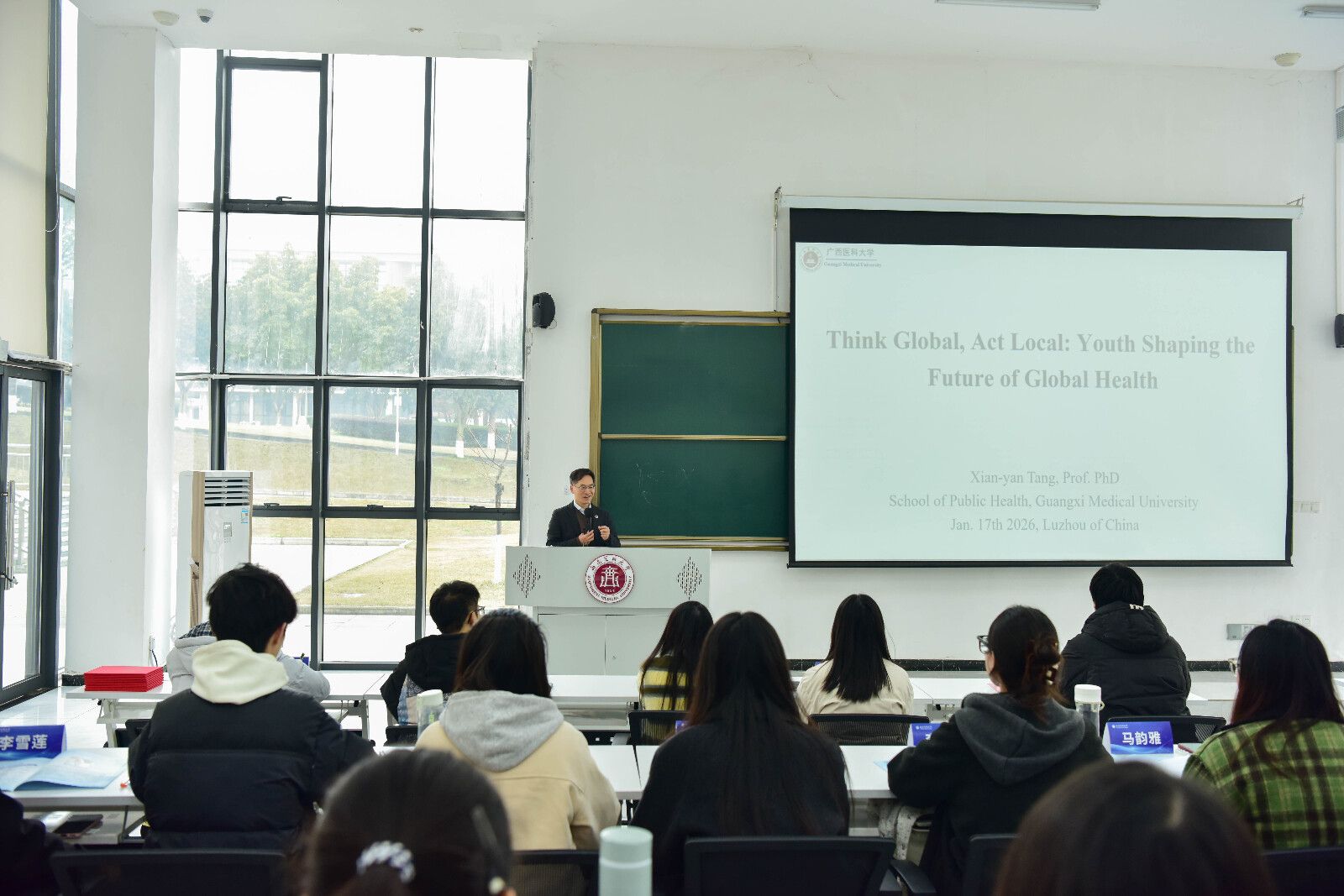 随后,广西医科大学华人策略社区官网网址副院长唐咸艳教授作了题为《放眼全球、立足本地:青年塑造全球卫生的未来》的专题报告。他立足“健康中国”战略背景,倡导同学们积极关注全球卫生方面的大事件,培养全球公共卫生视野,培育跨学科,跨领域的技能,并激励学员们以青年担当积极投身全球与本土公共卫生事业的创新实践。