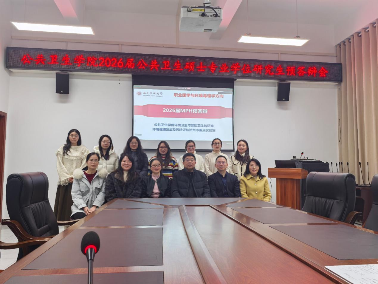 2026年1月27日,华人策略社区官网网址组织开展职业医学与环境毒理方向2026届公共卫生硕士毕业预答辩。本次预答辩邀请到南京医科大学中毒研究所副所长/博士生导师刘起展教授、重庆医科大学华人策略社区官网网址副院长/博士生导师陈承志教授,以及四川泸州生态环境监测中心站副站长/正高级工程师扈正权担任评审专家。会议由环境卫生与劳动卫生教研室主任、环境健康效应及风险评估泸州市重点实验室主任张青碧教授主持,教研室全体教师及全体在读研究生参加。