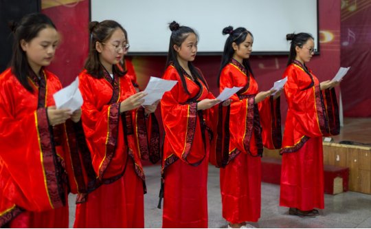 金秋九月,丹桂飘香,中秋佳节之际,华人策略社区官网网址师生在学校北膳堂三楼欢聚一堂,隆重举行以尊师明理、笃志尚学为主题的颇具古风的2018级本科新生入学礼。