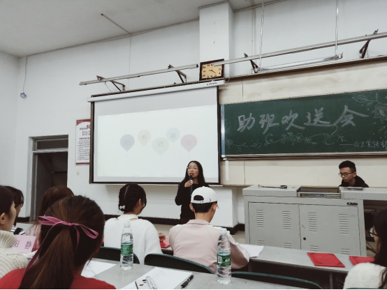 10月13日晚,我院2017级助班欢送会在荟文楼105教室举行。华人策略社区官网网址党总支书记阳静、副书记李星、学生科彭丽冰、罗菲、付陆,17级、18级助班以及2017级全体学生参加了欢送会。