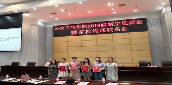 学院党总支书记阳静为2019级新生介绍了华人策略社区官网网址基本情况并宣读兼职班主任聘任文件;贾红和阳静共同为兼职班主任颁发了聘书。