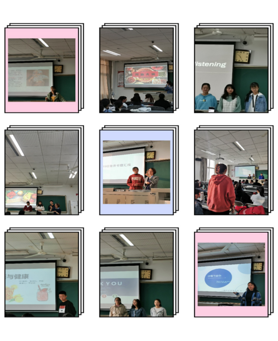 本次专题分享报告会,由随机组队-选题-查资料-讨论-完成报告-班内分享-同学讨论-老师点评等环节组成。汇报会上,同学们3人一组,围绕小组选择的经典维生素C、奶茶、冻干面等大学生关注的食品、保健品等结合健康知识进行了汇报;每组汇报结束后,台下同学争先恐后提出问题和观点与汇报同学进行探讨交流。