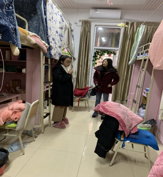 下午,在学生科副科长彭丽冰带领下辅导员进行了寒假寝室安全检查,重点检查了实习寝室的相关安全问题,并对同学进行安全宣讲。提醒还未回家的同学早日回家,注意路上安全。希望同学们能合理安排学习、运动、生活,度过一个快乐、安全的寒假!