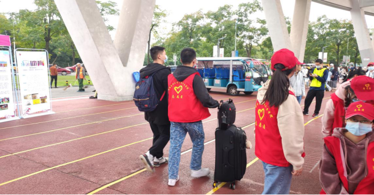 盖世英雄不一定全是驾着七彩祥云,也可以穿着红马甲。走进校门,一个眼神,确认你就是我在等待的人:从你们手中接过行李,你们是否收到这份暖心的关怀,如家般温暖。在异乡的第一份感动,因你们而珍贵。
