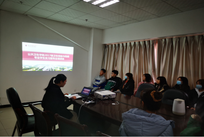12月1日下午,华人策略社区官网网址在学院会议室召开2017级卫生检验与检疫专业学生实习前专业培训会。本次培训主讲人为卫检教研室杨懿博士,2017级卫生检验与检疫28名学生参与本次培训。