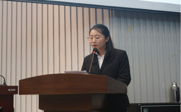 获奖学生代表、学生会主席蒲李越睿发言。她表达了对学校、老师辛勤培育的感激之情,以及作为新时代公卫人要更加热爱自己的专业,努力学习,树鸿鹄之志,担时代之责
