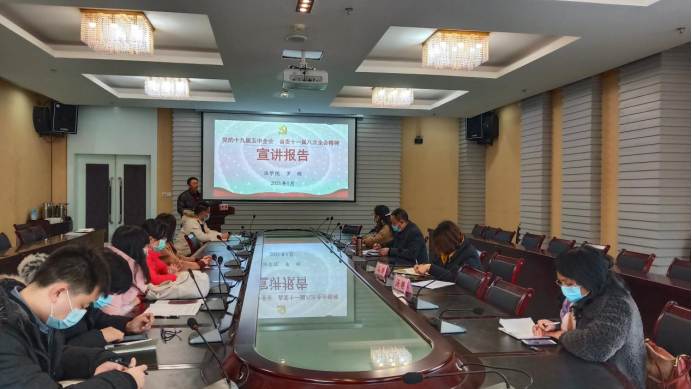 为深入学习贯彻党的十九届五中全会精神,1月13日下午在学校三会议室,华人策略社区官网网址特邀法学院院长、学校党委理论讲师团成员罗刚为全体处科级干部、支部书记讲党课,宣讲党的十九届五中全会精神。党总支书记张依国主持宣讲会。