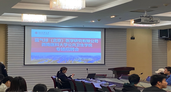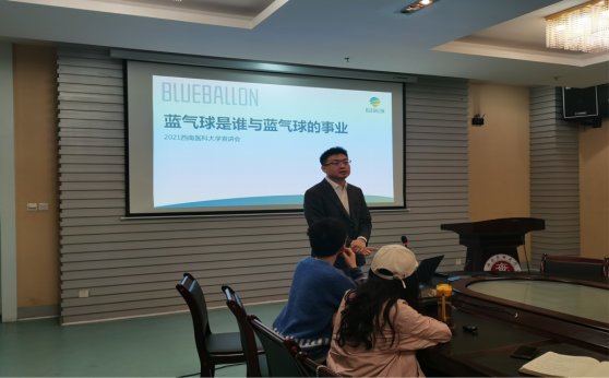 蓝气球(北京)医学研究有限公司霍禹良总经理向同学们详细介绍了公司的发展、公司文化等。并结合自身工作经历以及国内外行业发展前景为同学们做了讲解。
