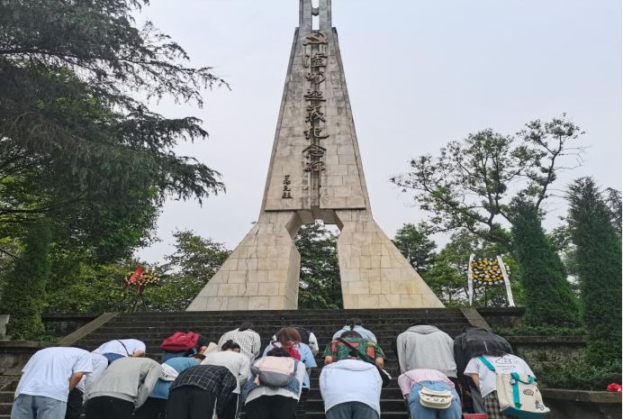 活动在同学们吟唱的团歌声中拉开序幕,全体同学肃穆,向革命英烈追思默哀,随后,大家在纪念碑前聆听了泸州起义的光荣故事,瞻仰纪念碑上烈士的名字,向他们致以最崇高的敬意。