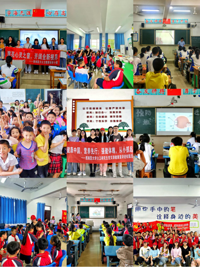 活动前,党员同志分为不同小组,与我院2016级预防医学专业同学们组队,分别以合理膳食平衡营养、保护视力预防近视、心理健康、性健康教育、体育健康、预防意外伤害等与青少年健康密切相关的主题精心筹备宣讲内容。活动中,各组同志通过详细生动地讲解、模具教学演示、游戏参与、发放宣传手册、健康知识问答等形式进入到12个中小学班级开展活动。宣讲结束后,还向学生们赠送了精美的学习用品,鼓励大家好好学习,健康成长。此次宣讲活动得到南城学校师生们的热情欢迎与大力赞扬。