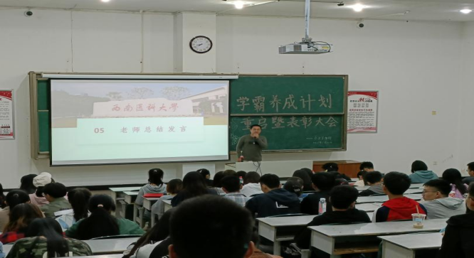 在经验分享结束后,公布表彰了上一学期参加学霸养成计划的优秀小组及先进个人,鼓励受表彰团体或个人在以后的学习生活中再接再厉,以自律作为底色,以勤奋作为画笔,共同绘制出多彩的大学生活画卷。也激励新生们向优秀同学学习,让良好的学习氛围,优良的生活作风充实自己的大学时光。表彰结束,孙老师为受表彰同学颁奖并合影留念。