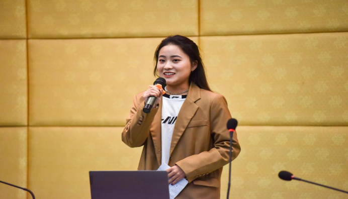 四号选手胡梦婕同学回顾了北京奥运圣火登顶珠峰的瞬间,展现中华民族的智慧和自强不息的民族精神。