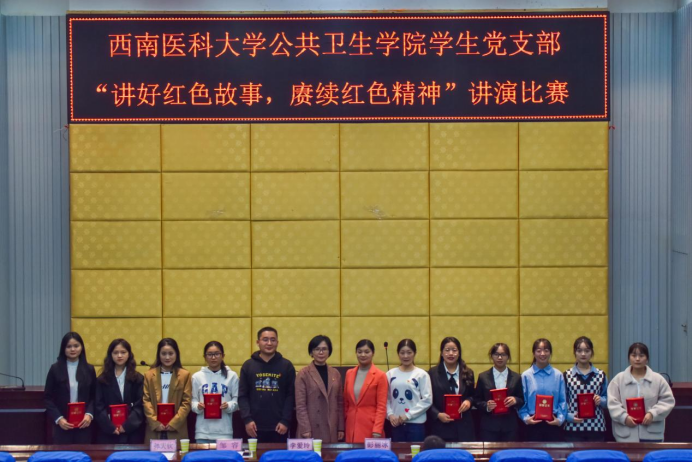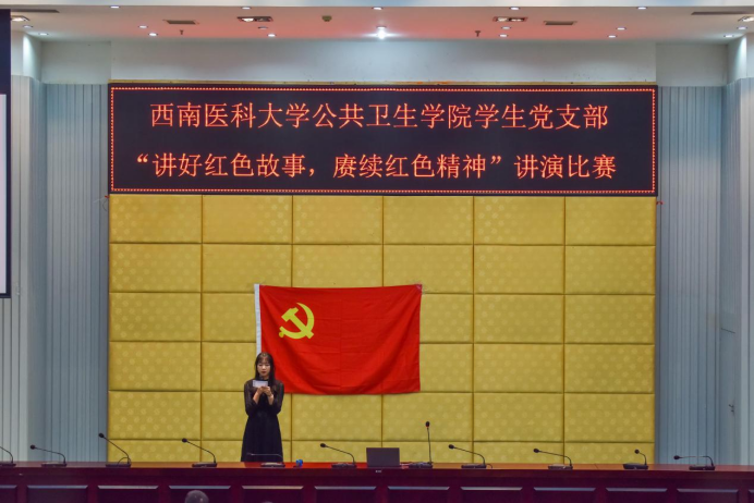 10月24日晚,华人策略社区官网网址华人策略社区官网网址学生党支部“讲好红色故事,赓续红色精神”演讲比赛在逸夫图书馆学术报告厅举行,华人策略社区官网网址党总支委员.社会医学教研室主任李爱玲老师、华人策略社区官网网址党总支委员.党政办公室主任邹容、华人策略社区官网网址党总支委员.学生科科长彭丽冰以及学生科孙夫钦老师担任评委,2020级、2021级300余名学生聆听红色故事。九位参赛选手同台竞技,共同讲述红色故事。