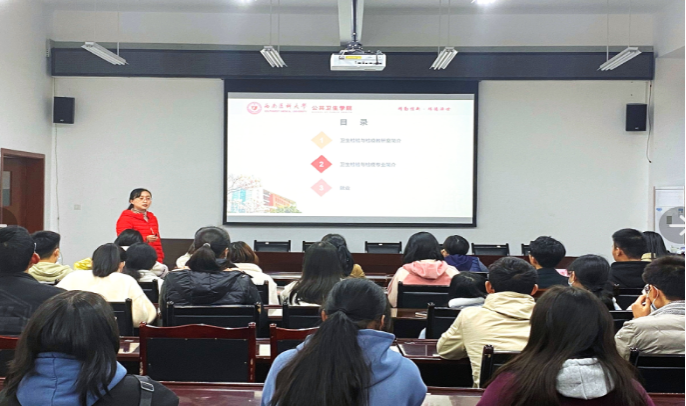 接下来,卫生检验与检疫教研室的各位老师分别就学籍管理、专业课程体系、科研、就业以及考研与保研方面向同学们做了介绍。刘青青老师就学籍管理中大学课程修读的相关条款进行解读,介绍如何选课、补考、重修以及学分绩点的相关知识。杨懿博士介绍卫检专业课程体系,刘小燕老师通过屠呦呦提取青蒿素以及自身科研体会向大家讲述了什么是科研以及大学四年如何参与科研。杨艳通过介绍卫检专业及卫检教研室的建立,专业培养目标以及就业去向,直观地向同学们展示了卫检专业的就业方向和前景,让同学们了解卫检专业在公共卫生体系中的重要作用,对专业充满信心。最后,兼职班主任刘静讲解保研与考研的相关知识,并推荐增强英语水平的学习方法,同时鼓励同学们积极考研进一步深造,追求更好的平台和发展。
