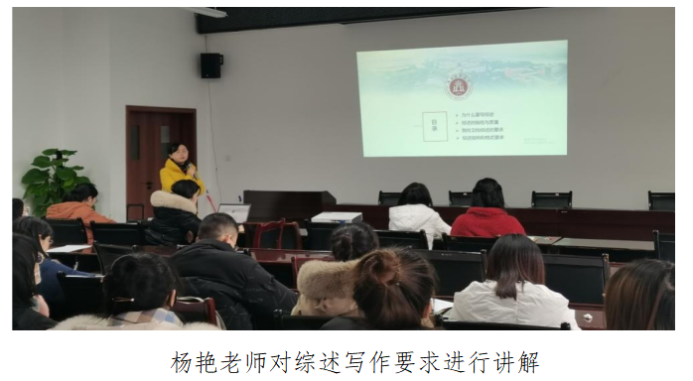 杨艳老师从毕业综述的重要性、要求和规范及抽检与质量几个方面对毕业综述写作进行讲解和指导,要求同学们积极与指导老师沟通,在实习期间,按要求保质保量完成毕业综述。