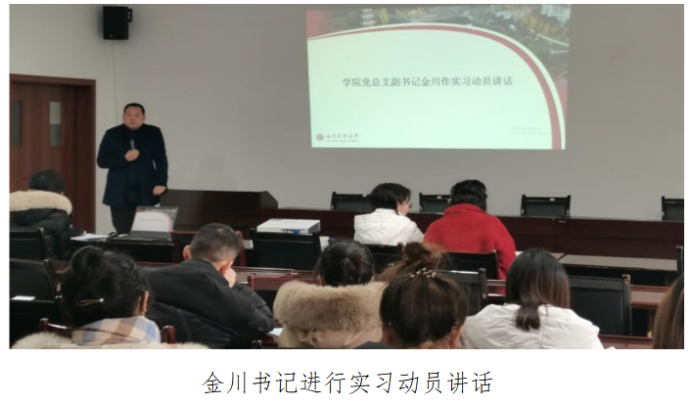 最后,金川做实习动员讲话总结,希望同学们不管是实习还是就业都要把握住机会,在实践中寻找方法,对待实习工作认真踏实,积极就业,在实习中有所收获。