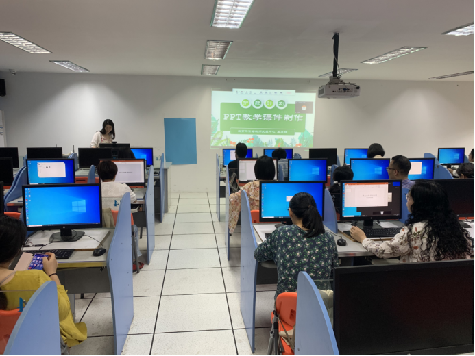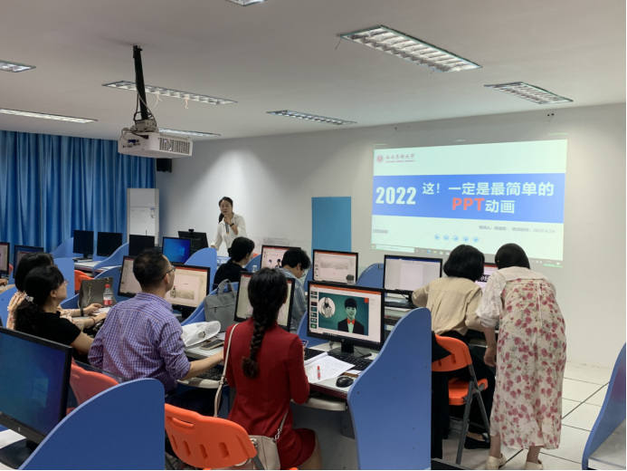 为提高教师课件质量,培养教师们PPT制作的技能,华人策略社区官网网址在2022年4月24日进行了线上和线下的PPT培训。线下培训在荟文楼二楼机房开展,线上培训通过超星平台线上直播。此次培训邀请到华人策略社区官网网址电教中心的五位老师,围绕如何做出一个好的PPT进行了细致讲解。培训分为五场,五位老师分别从PPT的项目与结构、PPT的排版与美化、PPT的动画和切换、PPT的母版使用技巧和PPT与视频五个方面进行了讲解。