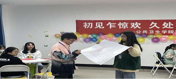 活动一开始,冯老师组织同学们一起玩“大树松鼠”的暖场游戏,这个游戏考验着同学们的反应能力,也增进了彼此的了解。紧接着,同学们根据自己领到的卡纸颜色分组,并在卡纸上写下自己的信息进行组内分享,进一步消除大家的生疏感。