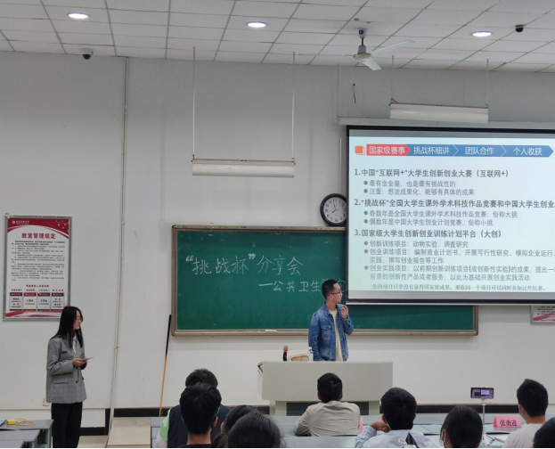 最后,孙老师进行分享会总结。孙老师就目前同学们参与创新创业赛事以及“挑战杯”的积极性进行鼓励,提出大学青春就要不留遗憾,不过三点一线的生活,让青春更加精彩,积极参加课外活动,积极参加课外学术竞赛以及创新创业赛事,在实践与研究中完善生命的意义。