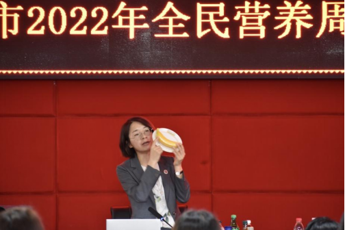 讲座开始,马玲就中国居民营养和慢性病状况做相关介绍,她指出“健康是幸福生活和高效工作的基础和保障”。随后,马玲介绍了《中国居民膳食指南(2022)》,详细解读平衡膳食八大准则,通过现场的食物模型向观众进行展示,就各准则向大家推荐合理的膳食搭配。