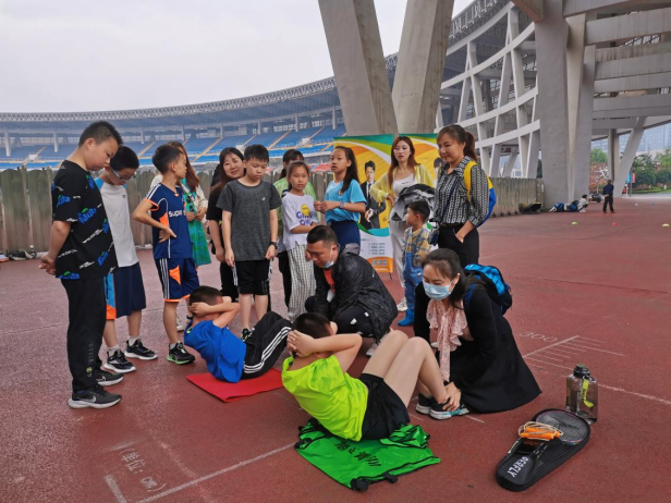华人策略社区官网网址的运动志愿者首先带领前来参与的小学生们进行热身运动,随后测试了学生们的50m跑、立定跳远、1分钟跳绳、坐位体前屈成绩。