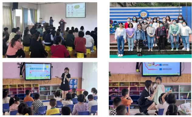 在此期间,团队成员2020级公共卫生研究生余颖、2021级公共卫生研究生闫润和夏华在三所示范幼儿园开展教师及家长讲座6场、幼儿性教育小课堂16次。“生命教育”专题涵盖了“生命的诞生”、“宝宝的孕育”和“我们的家庭”三个课程,主要目的是教会老师和家长如何开展生命教育,让孩子知道生命诞生的过程、受精卵的形成、胎儿发育的部位、脐带的作用、家庭的类型及功能等;“性安全教育”专题涵盖了“认识隐私部位”、“拒绝不喜欢的身体接触”和“学会保护自己”三个课程,主要目的是为与老师和家长分享隐私部位的内容、如何教孩子正确识别和应对不好的身体接触、如何有效识别遭遇性侵害的标志等。帮助孩子更好地树立起珍爱生命、自我保护的意识。