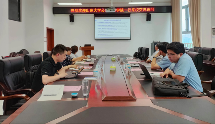 7月25日,山东大学华人策略社区官网网址党委书记姜文丽、常务副院长孙强、副院长马伟、教授张涛一行4人来校交流访问。我院举行了交流座谈会,座谈会分为上午和下午两个阶段进行,会议由学院院长马玲主持。